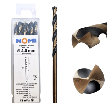 Wiertło do metalu 10 szt. 4mm Nomi hrc pro do stali tworzyw aluminium drewna