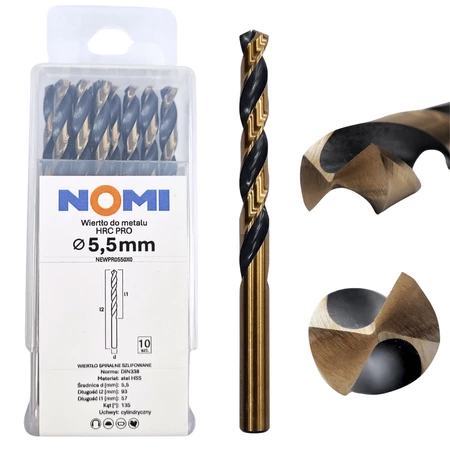 Wiertło do metalu 10 szt. 5,5mm Nomi hrc pro do stali tworzyw aluminium drewna