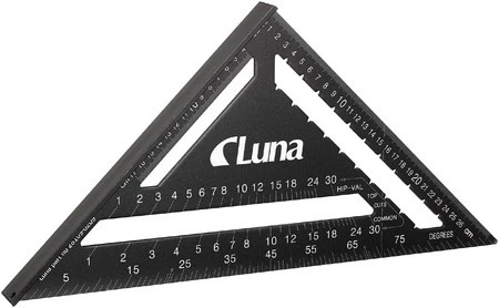 Kątownik Quick wykonany z frezowanego powierzchniowo aluminium. To bardzo uniwersalny, wielofunkcyjny wyrób o wielu zastosowaniach. Poza szybkimi pomiarami 90° i 45°, umożliwia również stosowanie jako kątomierz do kątów 0-90°. Podziałka linii równoległych w odstępach co 5 mm, w zakresie 20-125 mm. Znakowane laserowo wymiary i tekst sprawiają, że jest idealny do trudnych zadań. Kilka funkcji inteligentnych związanych z budową wiązarów dachowych. Otwór do zabezpieczenia narzędzia przed upadkiem.