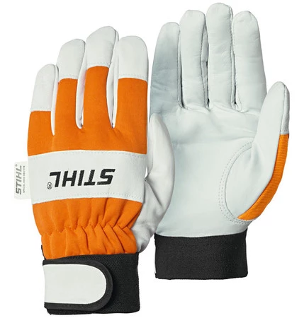 Wygodne rękawice robocze z miękkiej skóry koziej. Posiadają szerszy, elastyczny mankiet gumowy z zapięciem na rzepy. Szczególnie polecane do prac z pilarką. Pomarańczowa warstwa wierzchnia z nylonu, ściągacz, wyściółka.