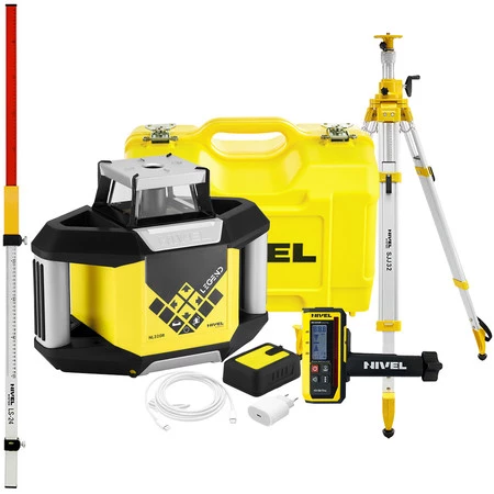 - Wszystko w pakiecie – niwelator dostarczany jest standardowo z grupą praktycznych akcesoriów wspierających prace (czujnik laserowy, uchwyt na łatę laserową, akumulatory, ładowarka, kufer transportowy)