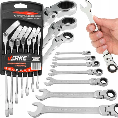 Klucze płasko-oczkowe z grzechotką 7szt Verke V35401