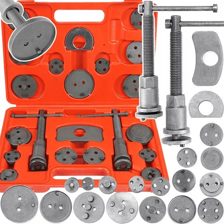 - Zestaw 21-elementowy: Zawiera wszystko, co potrzebne do wyciskania i naprawy tłoczków hamulcowych