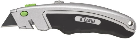 Nóż uniwersalny, model lekki klasyczny. Obudowa ze stopu aluminium, z detalami z gumy zapewniającymi wygodę użytkowania. Posiada ostre wybranie do szybkiego ucinania taśmy/sznura. W rękojeści magazynek ostrzy. Dostarczany z ostrzem SK2H. Otwór do dołączenia zabezpieczenia narzędzia.
