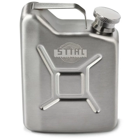 Wysokiej jakości elegancka piersiówka ze stali szlachetnej. Wygląda jak kanister i jest ozdobiona historycznym logo STIHL.