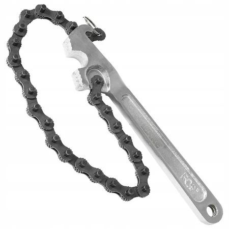 Dzięki zastosowaniu łańcucha stalowego o długości 400 mm, klucz pewnie obejmuje filtr, zapewniając maksymalną siłę uchwytu i eliminując ryzyko ześlizgnięcia się narzędzia podczas pracy. To narzędzie, które sprawdzi się zarówno w warsztatach samochodowych, jak i przy domowej wymianie oleju.