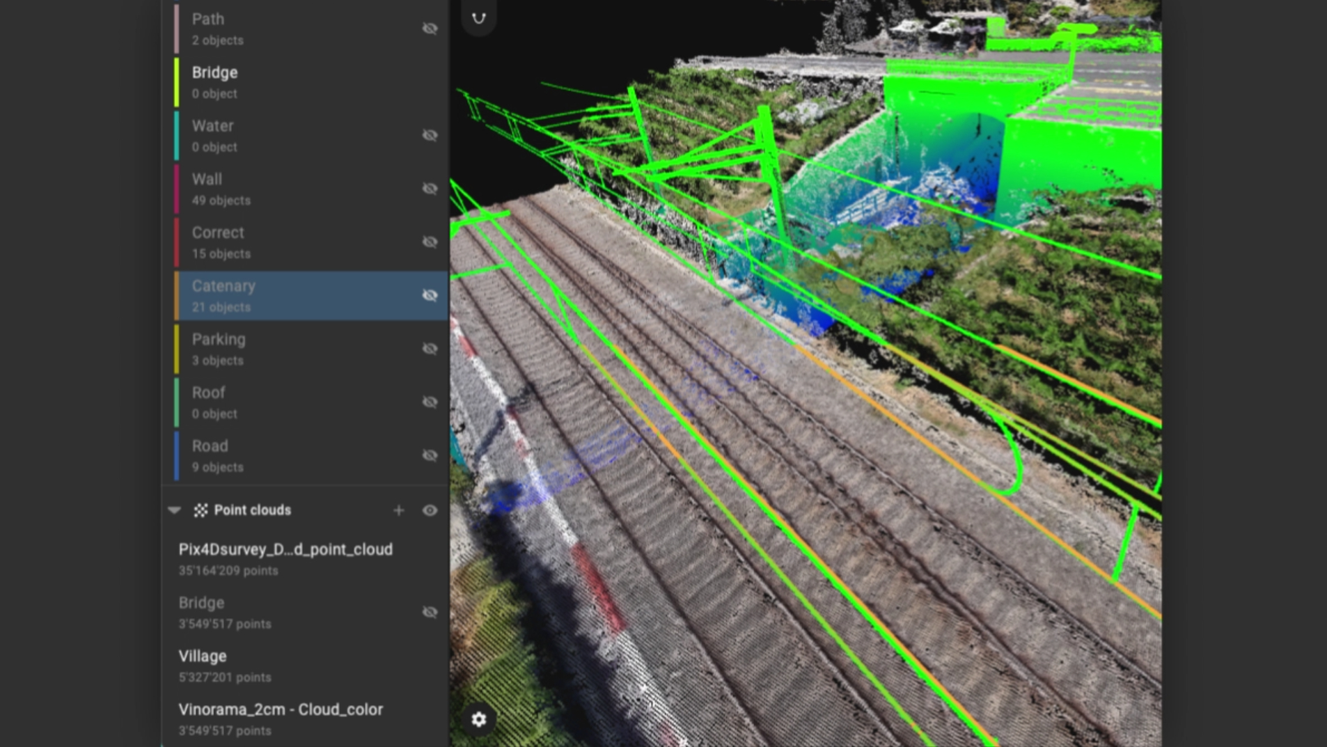 Pix4Dsurvey może obsługiwać miliardy punktów. Pracuj z więcej niż jednym plikiem chmury punktów w tym samym czasie, na tym samym projekcie.