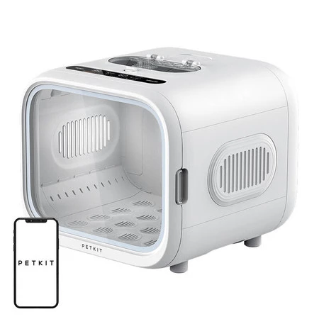 PetKit AIRSALON Max Pro to inteligentna suszarka dla kotów i małych psów starszych niż 6 miesięcy, której funkcje można dostosowywać za pomocą aplikacji PETKIT.