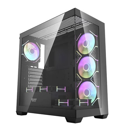 Darkflash DS900 to nowoczesne rozwiązanie dla wymagających użytkowników, ceniących zarówno estetykę, jak i funkcjonalność. Charakterystyczny, czarny design z panoramiczną konstrukcją bez słupka A, wyposażony w podwójne, w pełni przezroczyste ścianki ze szkła, nie tylko prezentuje się efektownie, ale także zapewnia doskonałą widoczność komponentów. Obudowa została stworzona z myślą o zapewnieniu optymalnego chłodzenia, wydajności i wszechstronności, jednocześnie oferując łatwość w modyfikacji i rozbudowie systemów komputerowych. W zestawie znajdziesz 7 wentylatorów ARGB 120 mm.