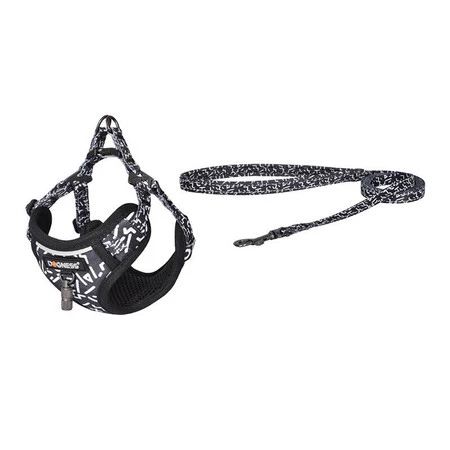 Zestaw spacerowy Dogness smycz+szelki dla psa (czarno-biały)