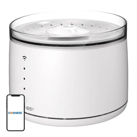 Dogness D07 to inteligentna fontanna, która zapewni Twojemu pupilowi stały dostęp do świeżej i czystej wody. Oferuje 3-stopniową filtrację, dzięki czemu skutecznie eliminuje zanieczyszczenia, a ponadto pracuje wyjątkowo cicho – jej poziom głośności to tylko około 38 dB. Wygodną obsługę urządzenia umożliwia dedykowana aplikacja, dzięki której będziesz dostawać powiadomienia o niskim poziomie wody, konieczności wymiany filtra i nie tylko.