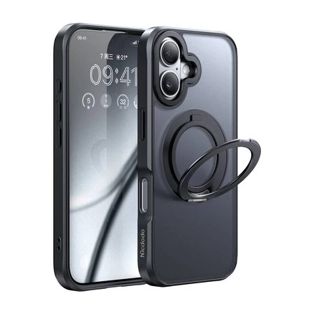Etui McDodo PC-4931 MagSafe dla iPhone 16 Plus z stojakiem (czarne)