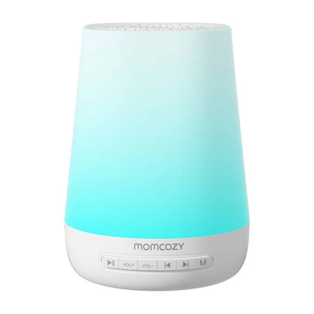 Generator szumów Momcozy wspiera spokojny sen malucha, oferując aż 34 różnorodne dźwięki, takie jak szumy białe, odgłosy natury i kołysanki. Zintegrowana lampka LED pozwala wybierać spośród 7 kolorów, których jasność możesz regulować. Urządzenie obsłużysz zarówno przy użyciu panelu dotykowego, jak i aplikacji mobilnej.