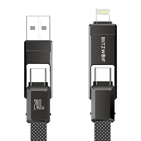 Kabel USB 4w1 Blitzwolf BW-HDC7 USB+C+Lightning 240W 1,2m (czarny)