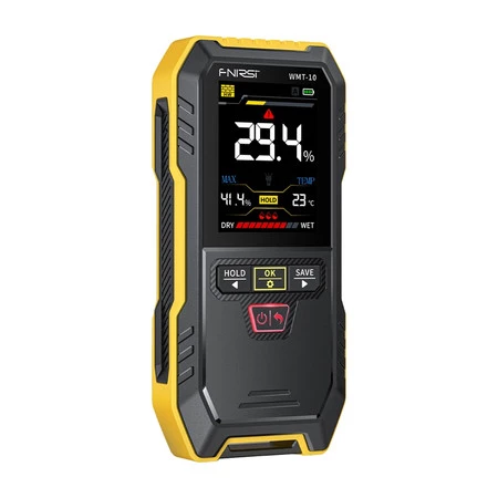 FNIRSI WMT-10 to zaawansowany, bezinwazyjny miernik wilgotności, który zapewnia szybkie i dokładne odczyty bez konieczności przebijania powierzchni. Dzięki technologii indukcyjnej i czterem trybom pomiarowym sprawdzi się zarówno w pracy z drewnem, jak i przy badaniu ścian, podłóg czy materiałów budowlanych. Wysoka rozdzielczość (0,1%) i szeroki zakres pomiarowy do 75% pozwalają uzyskać precyzyjne wyniki w zaledwie kilka sekund. Duży, kolorowy ekran TFT o przekątnej 2,4" zapewnia czytelność nawet w ciemnych pomieszczeniach, a wbudowana latarka dodatkowo wspiera pracę w trudnych warunkach.