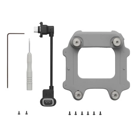 Zestaw montażowy DJI Manifold 3 dla serii Matrice 4D to komplet akcesoriów umożliwiających bezpieczne i stabilne podłączenie komputera pokładowego Manifold 3 do drona Matrice 4D. W skład zestawu wchodzi złącze, kabel koncentryczny oraz niezbędne śruby montażowe, a także śrubokręt i klucz imbusowy, który przydaje się nie tylko do dokręcania, ale też do resetowania urządzenia. Dzięki dobrze przemyślanej konstrukcji i dopasowaniu elementów połączenie pozostaje odporne na wibracje i nie rozłącza się w trakcie lotu, co zwiększa niezawodność całego systemu. Całość waży zaledwie 28 g, więc nie wpływa znacząco na masę drona.