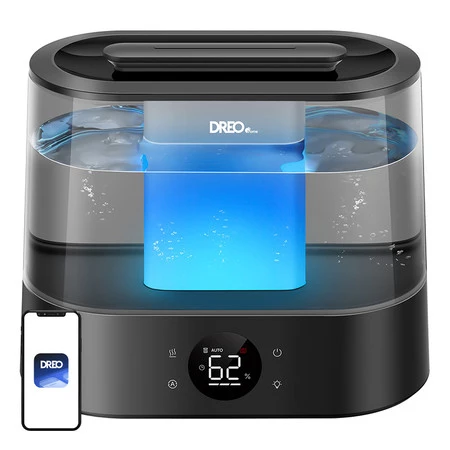 Nawilżacz jest kompatybilny z asystentami głosowymi i umożliwia pełne sterowanie przez aplikację mobilną DREO. Możesz ustawić harmonogram, zmienić tryb pracy, sprawdzić poziom wilgotności w czasie rzeczywistym, a nawet włączyć funkcję aromaterapii.