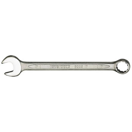 Mocne, o małej grubości klucze płasko-oczkowe w rozmiarach metrycznych. Ze stali chromowo-wanadowej. Wykonane zgodnie z DIN 3113A - ISO 3318 - ISO 7738. Ten sam rozmiar na obu końcach. Główka oczkowa dwunastokątna, odgięta pod kątem 15°. Główki szlifowane. Chromowane na mat.