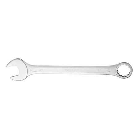 Klucz płasko-oczkowy NEO (nr ref. 09-721) o wymiarze 21 x 250 mm, wykonany zgodnie z normą DIN 3113. Wysokogatunkowa stal chromowo-wanadowa zapewnia długoletnią wytrzymałość klucza. Jakość narzędzia potwierdzona certyfikatem TÜV. Marka NEO spełnia oczekiwania profesjonalistów.