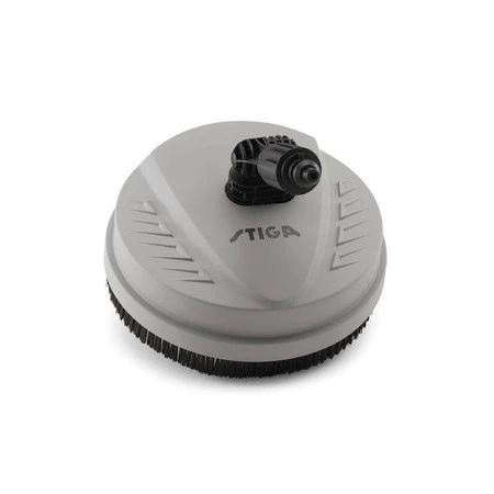 Przystawka STIGA Patio Cleaner przeznaczona jest do łatwego czyszczenia wszelkich powierzchni płaskich wokół domu takich jak: tarasy, elewacje, fasady, podjazdy, ścieżki, mury i płoty, a nawet drzwi. Element roboczy - obrotowe ramię z dwoma dyszami wysokociśnieniowymi, skutecznie usuwa strumieniami czystej wody trudne do usunięcia zabrudzenia takie jak błoto i mech, a nawet algi. Wydajność mycia jest dwukrotnie większa niż przy pomocy standardowej lancy uzbrojonej w głowicę natryskową z dyszą płaską czy rotacyjną. Specjalnie zaprojektowana obudowa z fartuchem ochronnym skutecznie zabezpiecza użytkownika i otoczenie przed rozbryzgami wody, a strumienie wody delikatnie unoszą przystawkę nad czyszczoną powierzchnią, ułatwiając w ten sposób manewrowanie. Przystawkę można stosować do powierzchni betonowych, kamiennych, ceramicznych, kompozytowych oraz drewnianych. Po zastosowaniu lancy nr 1500-9006-01 oraz odpowiedniego adaptera z zestawu nr 1500-9026-01 istnieje możliwość podłączenia Patio Cleaner’a do następujących urządzeń: Kärcher – modele K2, K3, K4, K5, K7 oraz starsze urządzenia segmentu Home & Garden, w których zastosowano złącze bagnetowe lancy Stihl – modele RE88, RE90, RE98, RE100, RE108, RE109, RE110, RE118, RE119, RE120, RE128+, RE129+, RE130+, RE142, RE142+, RE143, RE143+, RE162, RE162+, RE163, RE163+ oraz starsze urządzenia, w których zastosowano złącze bagnetowe lancy Husqvarna – modele PW125, PW235R, PW350, PW360, PW450 Nilfisk – modele C110.7, C120.7, C125.1, C125.7, C135.1, E150.2, E160.1, P160.2 oraz starsze urządzenia, w których zastosowano złącze bagnetowe lancy Lavor – modele Prime 165, Galaxy 150, Ninja Extra 145, Predator 160, Predator 180, Ikon 225 Extreme