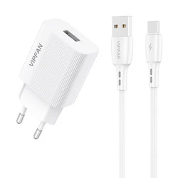Ładowarka sieciowa VFAN E01, 1x USB, 2.4A + kabel USB-C (biała)
