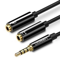 UGREEN AV141 Rozdzielacz audio AUX kabel mini jack 3,5 mm (męski) do słuchawki + mikrofon (żeńskie), 20cm (czarny)