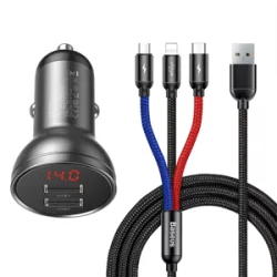 Ładowarka samochodowa Baseus z wyświetlaczem 24W + kabel USB 3w1 Baseus Three Primary Colors 1,2m