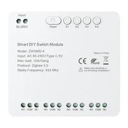 4-kanałowy moduł przełącznika ZigBee ze stykiem beznapięciowym DC 32V Avatto ZWSMMD-4-250V